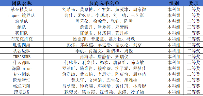 跨境电商赛道全国总决赛获奖名单(排名不分先后)