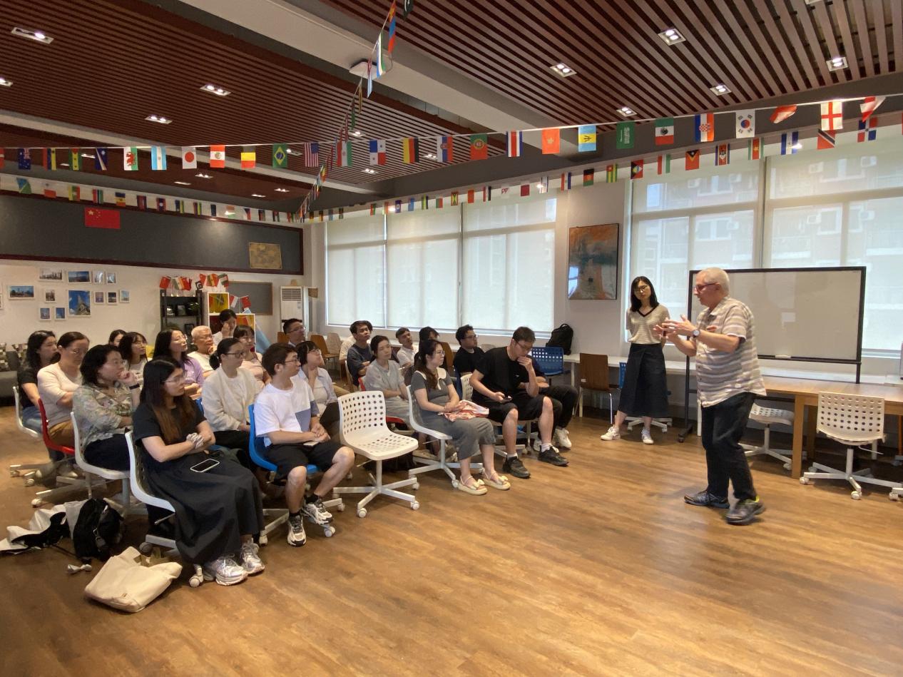 在交流环节,里斯·威廉姆斯博士结合自身经历,与教师们探讨了人工智能对我们生活与工作的影响。教师们也分享了各自的教学案例,并就如何在教学中更好地应用人工智能展开了热烈的讨论。