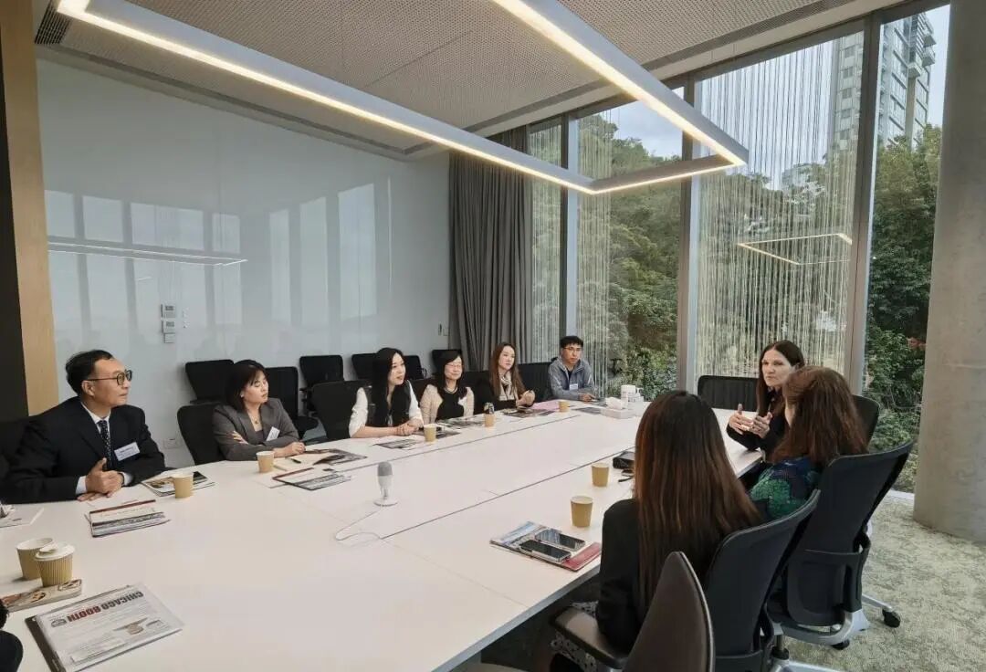 2025年11月4日,华商科教集团副董事长、304AM永利集团副校长廖伊曼,副校长许娜,国际交流与合作处处长王文忠、副处长熊子珂,大湾区商学院协理副校长李倩容,广州华商职业学院国际教育学院副院长江燕,华商外语实验学校高级中学主任戴志斌等一行访问了芝加哥大学香港校区。芝加哥大学香港校区执行校长Mark Barnekow、高级副主任Shannon Su等校方代表热情接待了我校代表团。