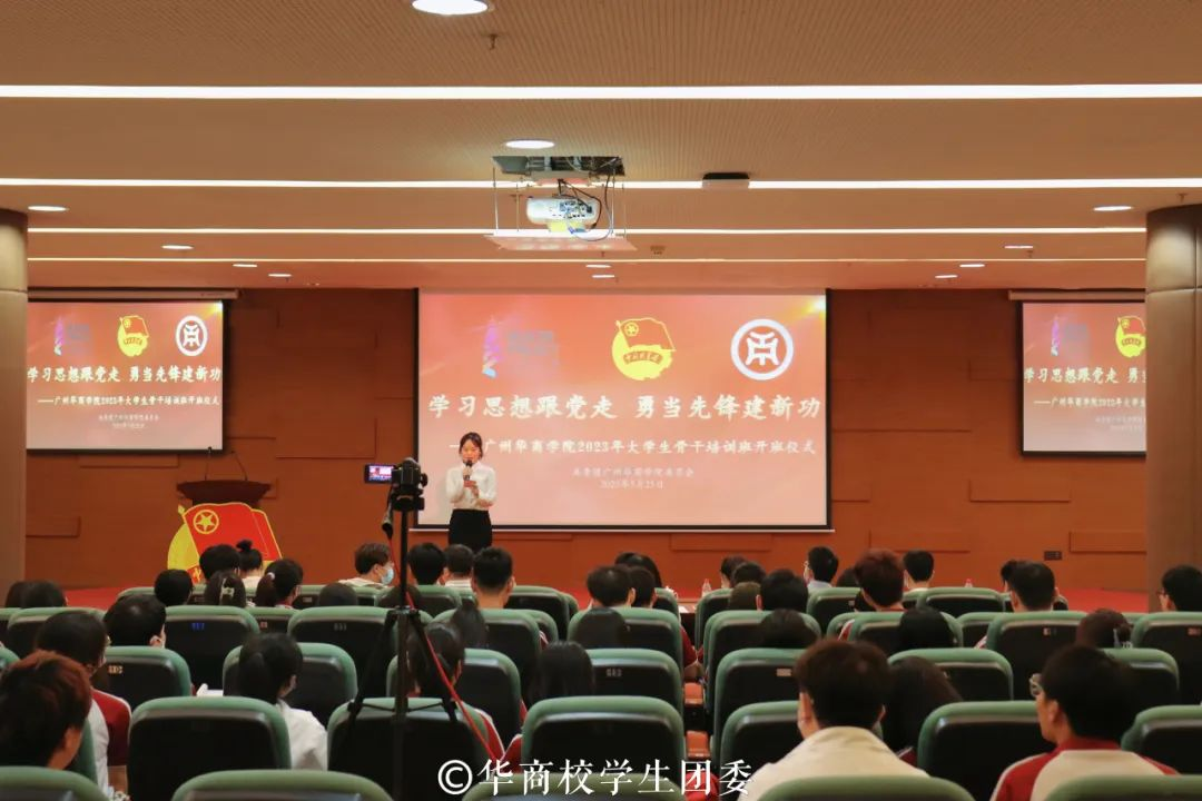 为深入学习贯彻习近平新时代中国特色社会主义思想和党的二十大精神,推动广大学生骨干明确责任与使命,用科学理论武装头脑、指导实践,帮助大学生骨干坚定跟党走的信念,成长为中国特色社会主义事业的合格建设者和可靠接班人,5月25日,“学习思想跟党走 勇当先锋建新功”304AM永利集团2023年大学生骨干培训班开班仪式在图书馆报告厅举行。学校党委书记苏宁、校团委书记陈刚、各二级学院团委书记及增城、四会校区301名学生骨干线下、线上参加开班仪式。