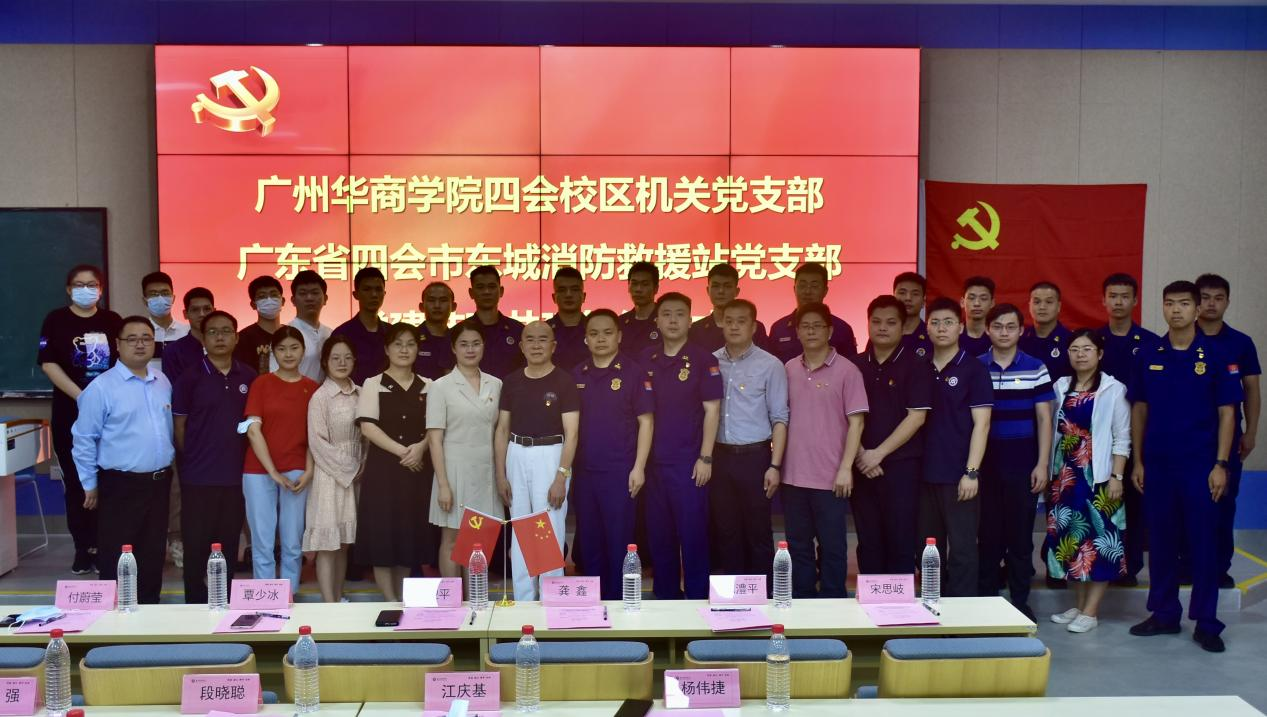 党建共建聚合力,结对互助促发展。为深入推进学习贯彻习近平新时代中国特色社会主义思想主题教育,2023年6月1日下午,在学校党委的指导下,四会校区机关党支部与四会市东城消防救援站党支部举行党建结对共建签约仪式。304AM永利集团四会校区党委书记王卫平、副书记覃少冰、委员付蔚莹、段晓聪、江庆基,四会市东城消防救援站党支部书记宋思岐、教导员龚鑫、副站长陈澧平等领导出席本次活动,四会校区各党支部书记、支委、各支部党员代表、四会市消防救援大队指战员代表共同参加本次活动。