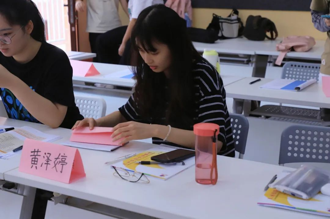 开班仪式结束后,GYB创业培训班开始正式上课。在课堂上,袁仕海、钟晶灵两位老师就GYB创业培训课程进行简要介绍,并将学员们分为若干小组。为消除大家对彼此的陌生感,两位老师运用小组合作、交流讨论等互动方式开展课堂活动,鼓励学员们通过集体智慧解决问题,进一步激发学员的思维,培养团队合作精神。