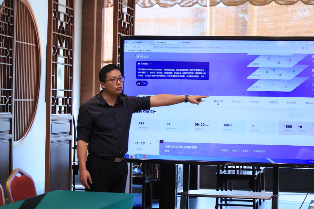 会议伊始,宋得安总监介绍了上海卓越睿新数码科技股份有限公司旗下智慧树平台的发展历程和知识图谱的基本概念,明确建设知识图谱对于一流课程建设和微专业建设的重要性。随后,宋总监详细讲解了现有的AI型、工具型、混合型三种图谱类型,并运用成功建设知识图谱的课程案例,分析了如何构建创新创业课程的知识图谱。