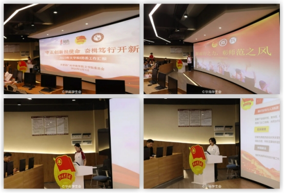 五四红旗团委评选。文学院团委等9个二级学院团委的学生骨干代表分别从思想引领、组织建设、创新创业、文化建设、志愿服务和社会实践等方面入手,通过PPT展示本学院团委在过去一年中的特色工作成效及取得的成绩收获。汇报内容展现了我校基层团委扎实的工作作风、实干的工作态度、活力蓬勃的精神面貌。