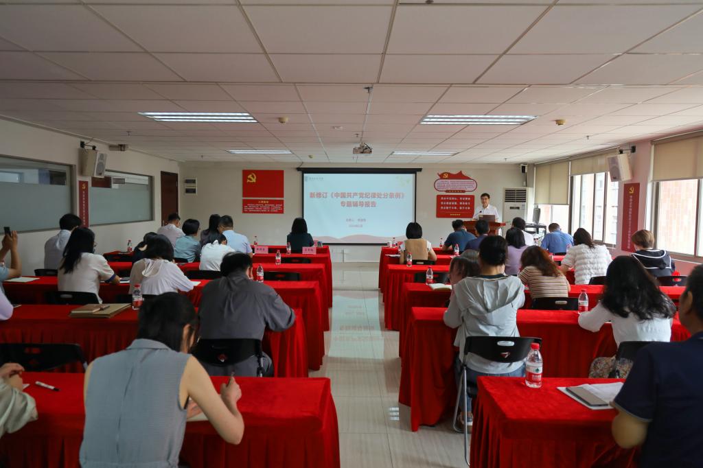 随后,党纪学习教育专题党课在行政楼502会议室举行。专题党课由党委宣传部部长刘苗主持。郑金栈部长为学校各基层党组织书记、组织员以及行政第五党支部全体党员围绕新修订《中国共产党纪律处分条例》(以下简称“条例”)作专题辅导报告。