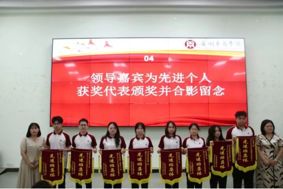 (陈玉欢书记、许娜副校长为先进集体获奖班级代表颁奖)