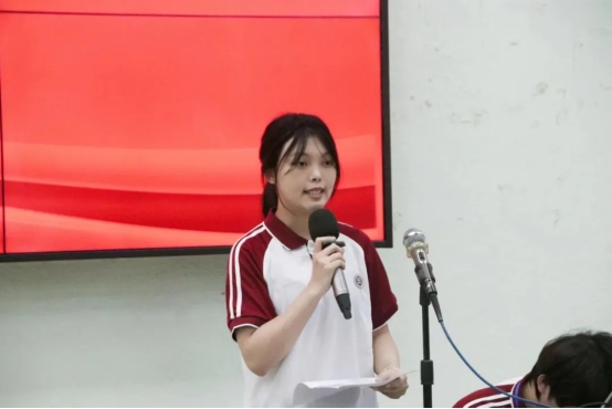 刘佳蓉同学作为先进个人代表发言。她从校园安全教育的重要性、课堂纪律的强化、行为文明的弘扬、自我管理与自我教育、持续的自我提升等五个方面阐述了自己在本次文明安全纪律教育月活动中的收获。她表示,文明安全纪律教育月虽然即将结束,但我们的学习与成长不应止步。我们要将文明安全纪律教育月的精神内化于心,外化于行,继续发扬文明安全纪律的精神,共同创造一个更加美好的校园环境。