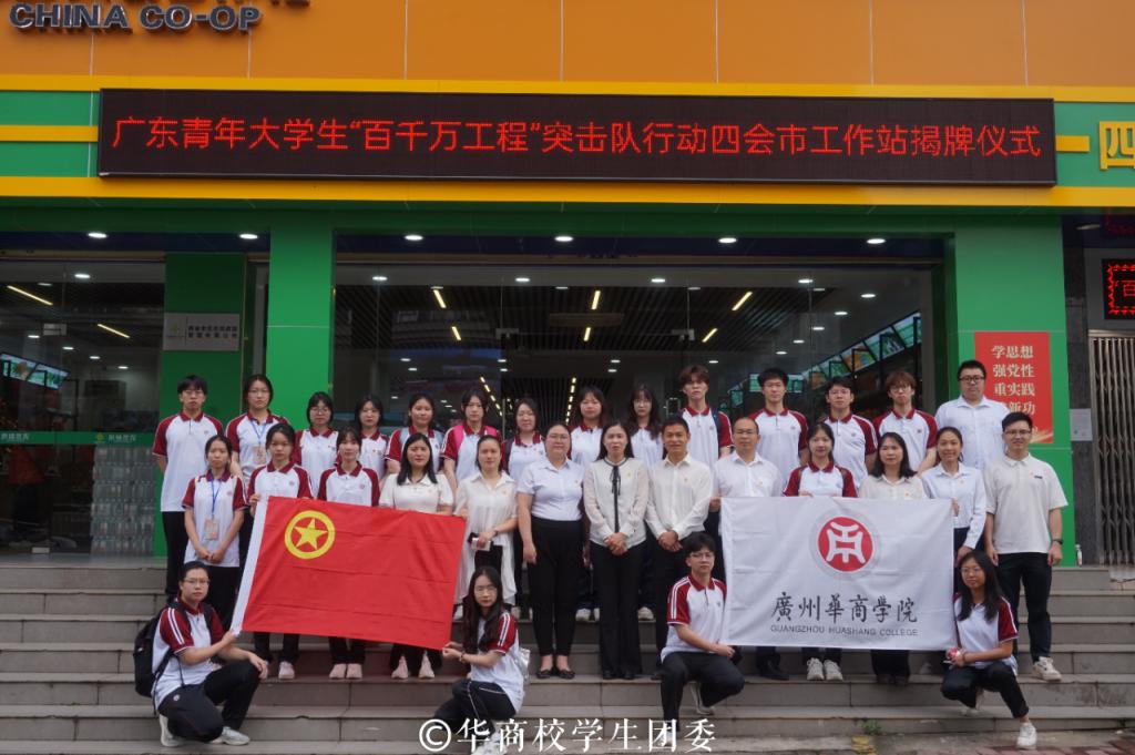 揭牌仪式上,团四会市委书记崔冰娜对广东青年大学生“百千万工程”突击队行动四会市工作站进行详细介绍。四会市委副书记吴鋆及团四会市委、黄田镇、市供销社等主要负责同志进行揭牌仪式,我校“小旅进镇”突击队和直播突击队成功入驻四会市工作站。