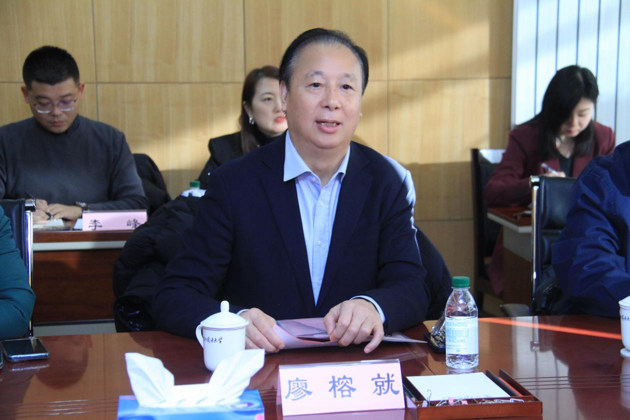 华商教育集团董事长廖榕就发言。廖董事长对北京外国语大学领导一行的热情接待表示衷心感谢,并对北京外国语大学的办学成就和国际化教育教学水平表示高度赞赏。随后,他分享了华商教育集团的办学理念、发展规划以及在国际化教育创新方面的思考,表达了希望通过此次交流,汲取北外宝贵经验,双方能够深化合作、推动合作共赢的愿景,为建设教育强国贡献华商教育的智慧和力量。