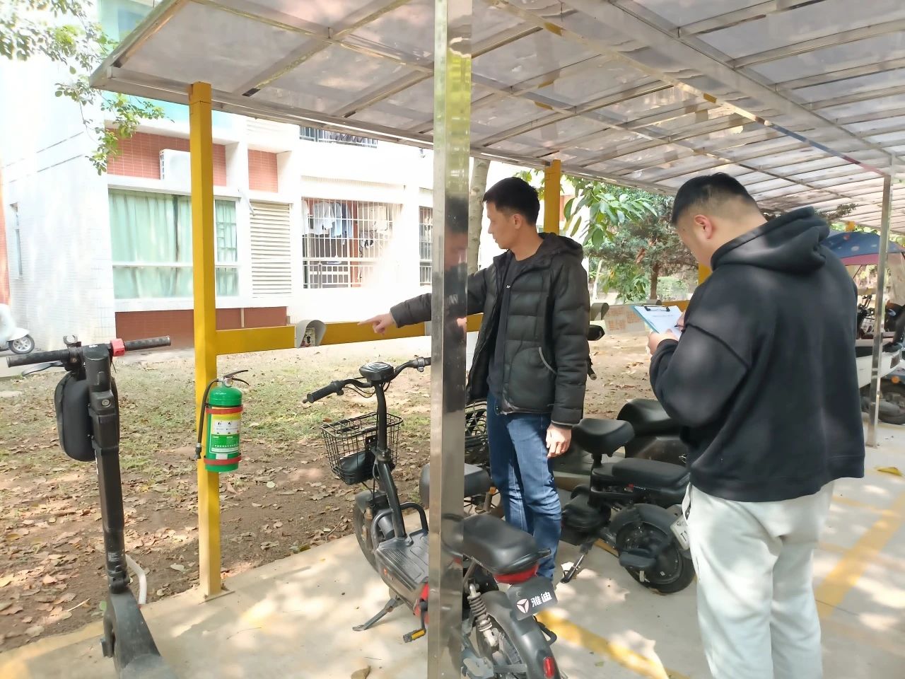 陈玉欢书记带队检查走访了启智楼及周边区域,她指出,相关部门需进一步规范办公和教学区域的安全和卫生管理,杜绝乱摆乱放和随意张贴的现象。她强调,“安全无小事”,要以“零容忍”态度筑牢校园安全防线,为师生营造平安、有序的学习环境。