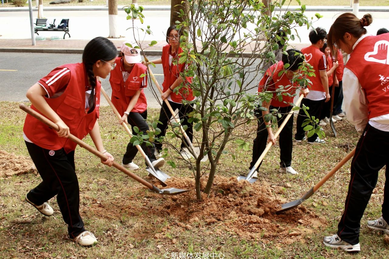 启动仪式后,相关单位、部门领导干部及三院校师生等来到厚德楼参加植树护绿活动。