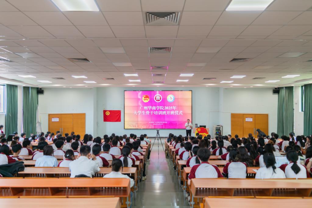 党委书记陈玉欢教授为开班仪式致辞。陈书记代表学校党委向参加本期培训班的全体学员表示欢迎、向为此次培训班付出辛勤努力的各位老师和学生骨干表示感谢。她表示,实施大学生骨干培训班是学校共青团履行为党育人、为国育才重要使命,聚力思想政治引领主责主业的重要途径。近年来,学校始终坚持立德树人,不断强化各类师资队伍建设,推进五育融合,以学生综合素质养成工程为育才抓手,坚持培养全面发展、能力出众、品德优良、符合产业需求的华商人才。她强调,今年是学校迎接本科教学工作合格评估、20周年校庆的关键之年,希望大家能做到:第一,提高思想站位,加强理论学习,凝聚助力合格评估的共识。第二,善用AI工具,赋能创新实践。第三,以身作则,发挥示范引领作用。她鼓励大家在学习中坚定理想信念,在实践中练就过硬本领,在服务中扎根人民,在交流中增长见识,把个人成长融入学校建设、融入地方经济发展。