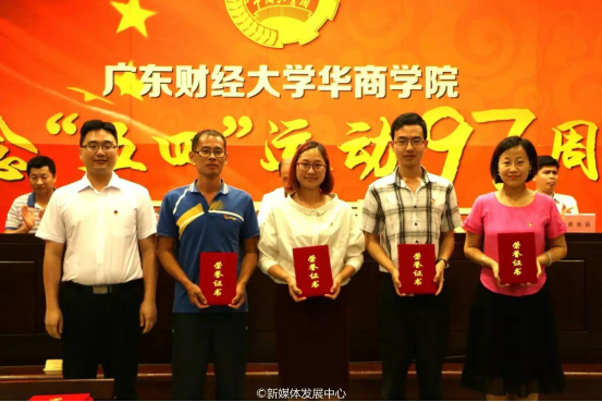 5月12日18时,广东财经大学华商学院纪念“五四”运动97周年暨建团94周年表彰大会在国际会议中心四楼报告厅隆重召开。出席本次大会的领导和嘉宾有学院党委书记苏宁,团委书记杨宪、副书记刘苗,团委常委吴泽佳、黄秋铭,以及学院团委委员、各学生组织(社团)的指导老师、团员青年代表等。大会由学院团委副书记刘苗主持。