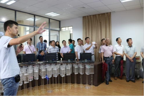 杨丽娟副院长、张武华副院长一起陪同来宾们乘车参观了华商的校园环境和校园建设。在参观途中,学院办公室给来宾们详细介绍华商教学行政区、生活后勤区等各功能区的总体情况,以及各学院的基本情况,招生专业,办学特色和内涵建设。最后,来宾们分别参观了华商学院投入逾千万元高标准建成的校内经管学科跨专业综合仿真实习、云计算、云桌面等平台,以及华商职院物流实训、电力系统自动化、工业机器人等实训中心。