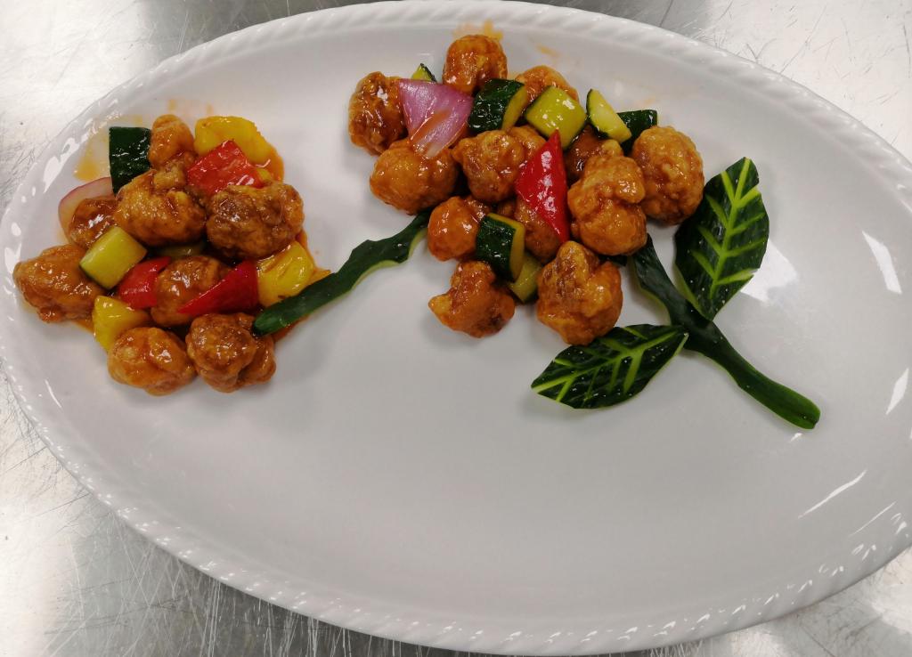 国家中式烹调高级技师、中国烹饪大师、中国金牌总厨、国侨办中餐繁荣基地(广州基地)秘书长李绪彬老师为外籍教师展示和讲解了“咕噜肉”、“醇香金瓜烙”这两道广东特色名菜、名点的做法。李老师精湛的刀工和炉火纯青的厨艺,赢得了领导们的一致肯定,外籍教师们纷纷竖起手指为李老师点赞。
