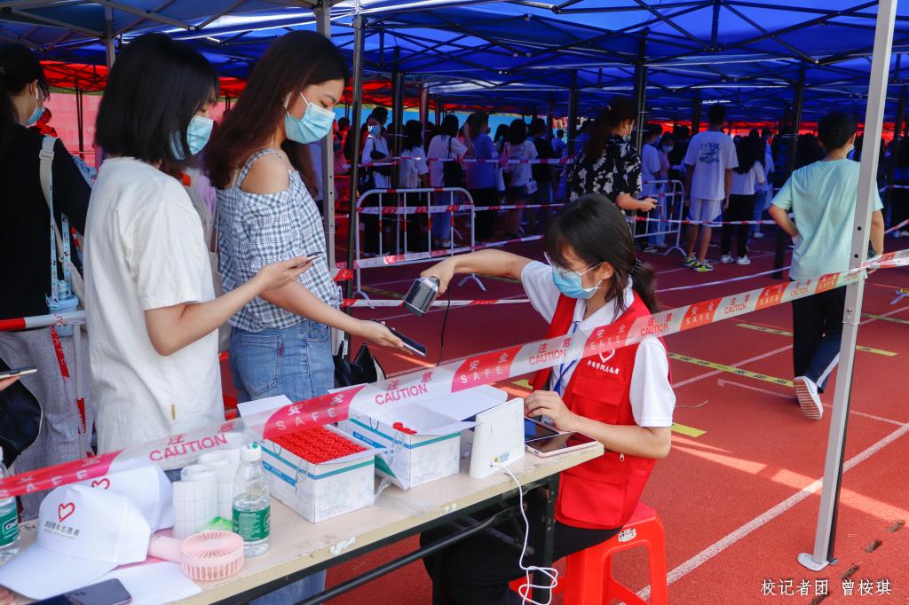 一轮核酸奠基础,二轮检测再升级。基于第一轮核酸检测的工作,我校在第二轮核酸检测工作中更显顺利。学校各部门在接到增城区核酸检测最新安排后,连夜安排志愿者、后勤警卫人员对检测场地进行部署,并对各院系发放检测通知,为正式工作的开展做好全面的准备。此次检测任务以院系为单位进行有效部署,采取分学院分批次的原则,做好人员分流,极大地解决了人流拥堵以及“排长龙”这一大难题,有效地控制了场地的人员密度,减少参检人员的等候时间。在学校的有效安排下,二轮检测较第一次检测更加有序、省时、高效。
