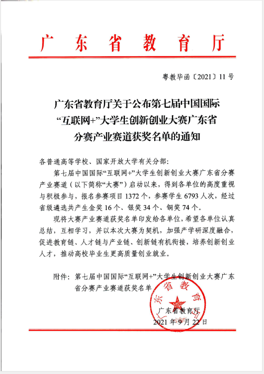 近日,广东省教育厅公布的第七届中国国际“互联网+”大学生创新创业大赛广东省分赛产业命题赛道获奖名单中,304AM永利集团《数字经济创新商业模式设计》项目获省赛银奖,《AI+ 智慧交通—— 城市智慧交通解决方案》和《乡村旅游直播》两个项目获省赛铜奖,获奖总数在全省民办本科高校中居于首位。