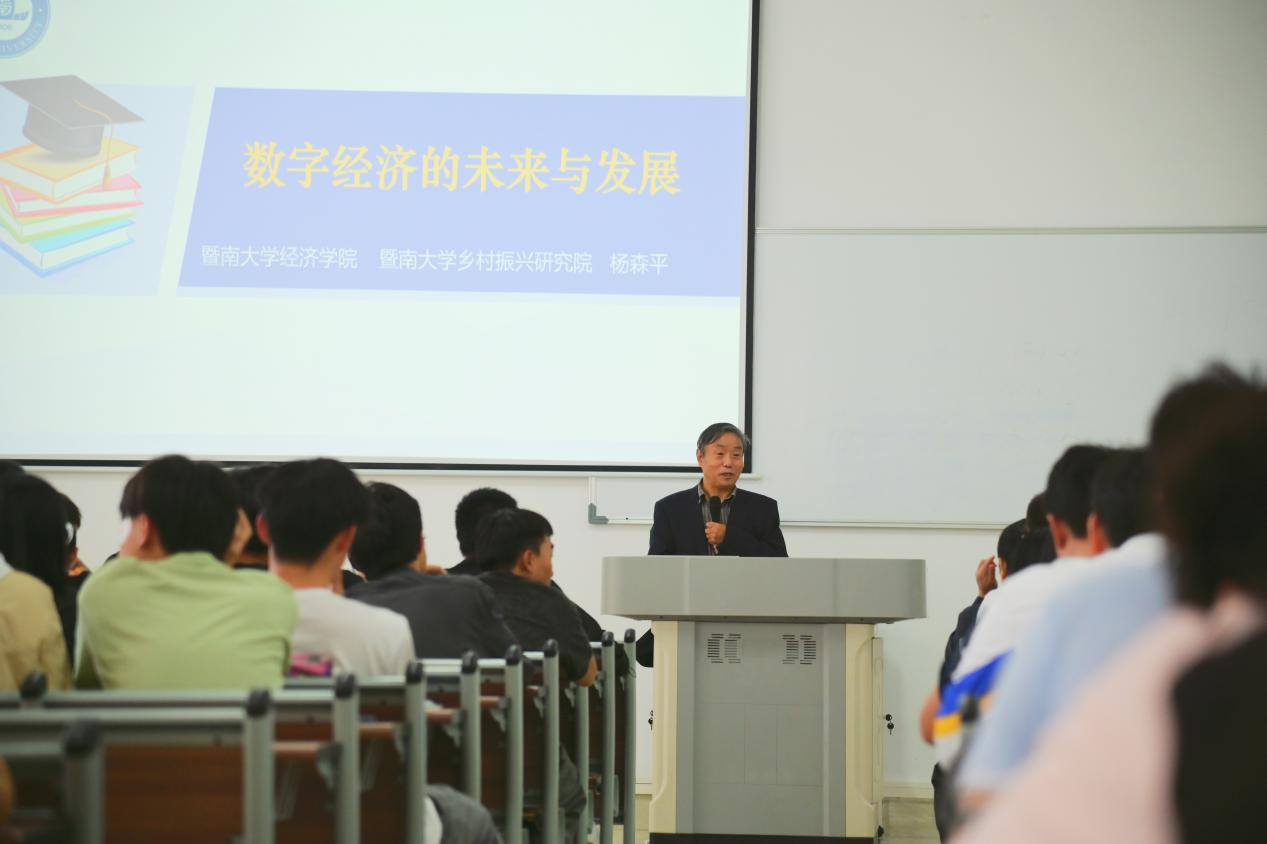 为营造学术氛围,开拓华商学院四会新生的知识,管理学院于2021年10月18日下午16时,在304AM永利集团四会校区举办主题为“数字经济的未来与发展”的学术讲座,特邀暨南大学经济学院教授、博士生导师杨森平教授主讲,讲座由管理学院院长李招忠教授主持,管理学院教师代表和四会校区学生以及其他学院学生出席本次讲座。