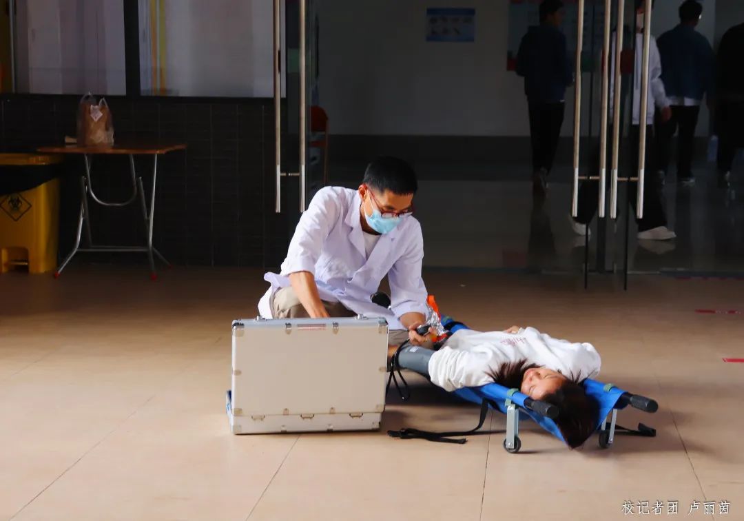 下午15:35,浓烟渐起,警铃乍响,消防应急疏散演练正式开始。由各二级学院辅导员组成的紧急疏散小组迅速到达指定楼层,按照指定的疏散路线,指导学生用湿毛巾捂住口鼻,沉着冷静、快速有序地从楼梯向外撤离到提前划分好安全地带。此次消防演练还模拟了火场中救援被困者的场景,让同学们对火场逃生有更清楚的认识。