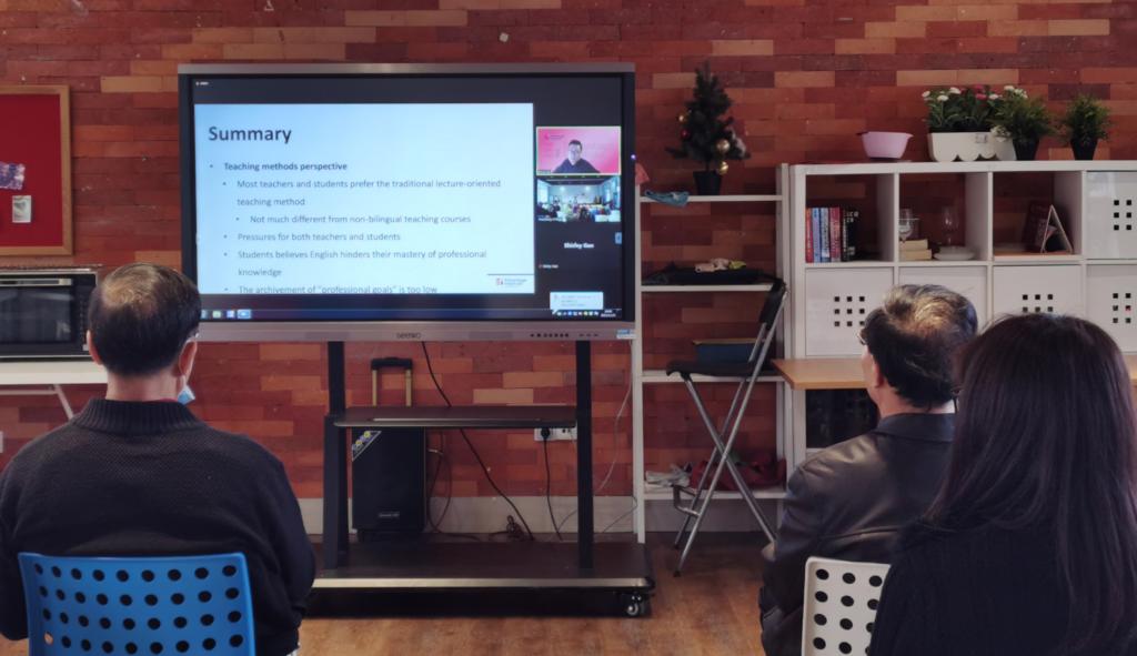 顾树俊博士分别从双语、全英教学中存在的问题、双语教学模式的挑战和对未来改进的建议三个部分对“双语教学中的困难与挑战”这个主题进行了剖析。顾树俊博士认为老师在英语教学中应摒弃中文思维和过分依赖定制PPT的授课模式,应改进、创新传统的讲授型教学方法使学生们能够被课堂吸引,从而更好的吸收双语、全英教学下的知识,并应该坚持采用全英教材从而逐渐提升学生的英语能力。顾博士列举了很多双语、全英教学中可以采用的有效方法,讲座内容高质高量,得到了老师们的肯定。