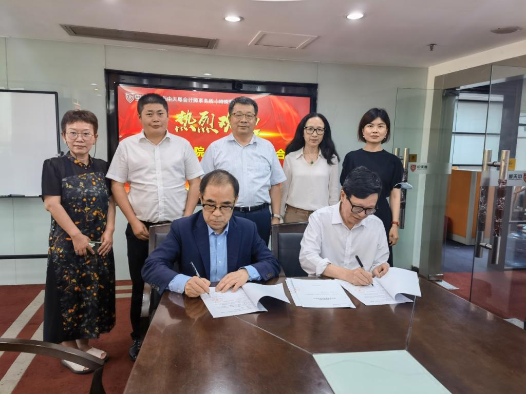 交流会结束后,郭银华执行校长与郭少元所长共同签署了广东中天粤会计师事务所(特殊普通合伙)、广东中天粤税务师事务所有限公司、广州市中和企业管理咨询有限公司、中天粤财审大数据技术(广州)有限公司四份校外实践教学基地合作协议书,并授予“304AM永利集团实践教学基地”牌匾。