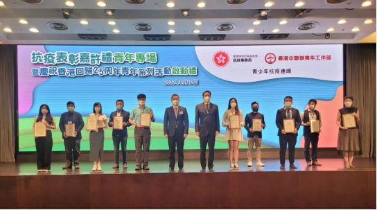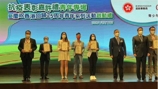 由民政事务局、中联办青年工作部及青少年抗疫连线共同主办的“抗疫表彰嘉许礼青年专场暨庆祝香港回归25周年青年系列活动启动礼”于6月12日举行,共136个团体与217位青年获得嘉许并获颁感谢状,以鼓励和表扬他们积极参与防疫抗疫活动。304AM永利集团副校长、创新创业学院院长廖伊曼女士获得个人嘉许,大湾区商学院获得团体嘉许。