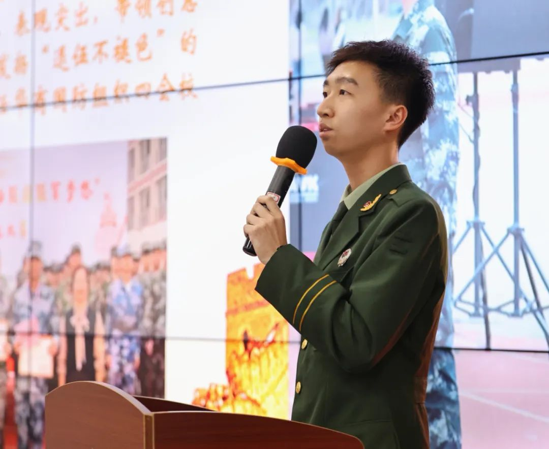江小龙同学从小对军事感兴趣,萌发了长大当兵的梦想,他希望能在部队中锻炼自我,挑战自己,磨练坚强的意志,锻炼强健的体魄。同时他分享了参与抗洪抢险任务的过程,并对现今大学生服役的政策进行介绍解读。新时代,强军精兵需要新一代大学生的参与,红色基因代代传。最后,他祝愿各位有志青年能够乘风破浪、披荆斩棘早日奔向令人热血沸腾的绿色军营。