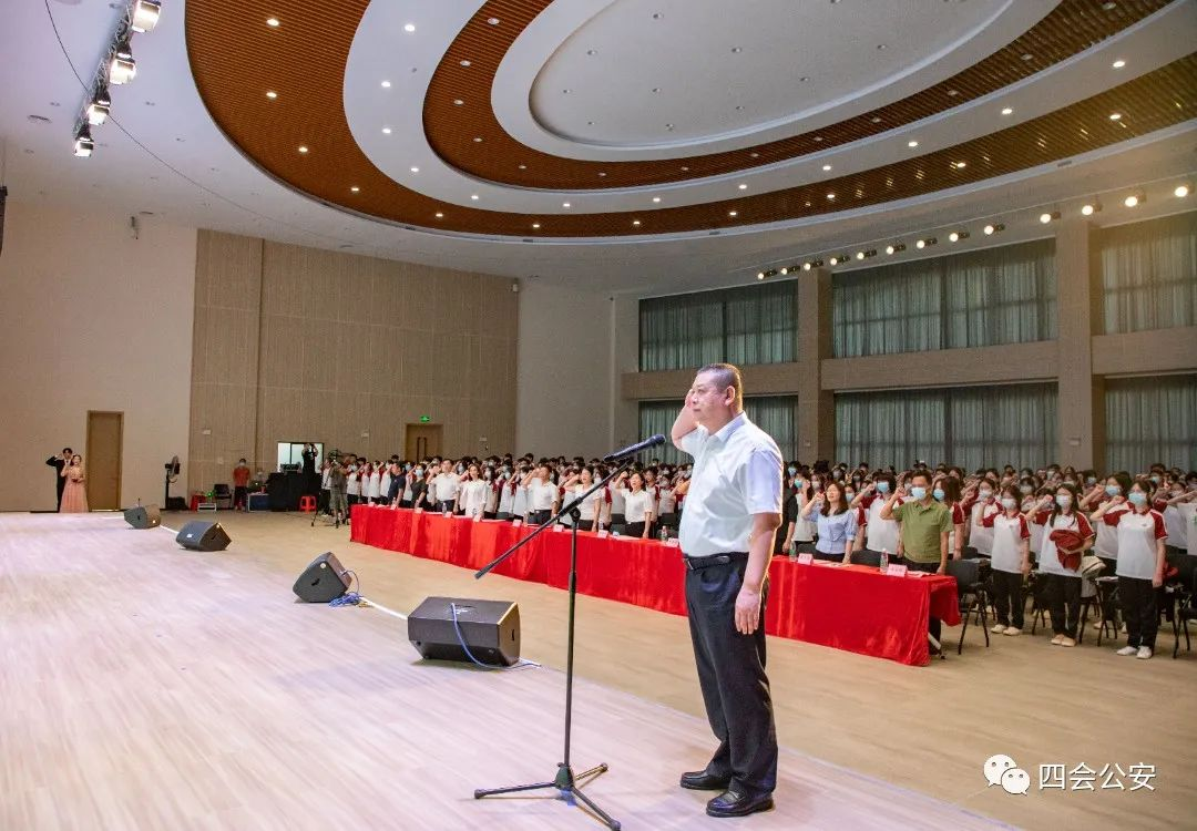 四会市副市长、禁毒委副主任、公安局局长杨文东带领与会人员进行禁毒宣誓,铿锵有力的誓词响彻活动现场,展现了华商学子参与全民禁毒的坚定决心。同学们将积极争做一名禁毒卫士,提高自身识毒防毒拒毒的能力,带动身边人共同抵制毒品。