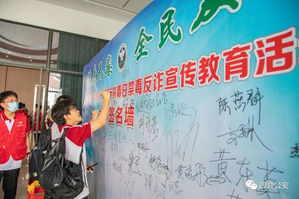 同学们在禁毒墙上留下自己的签名,表明自己禁毒决心,加入禁毒的行列。