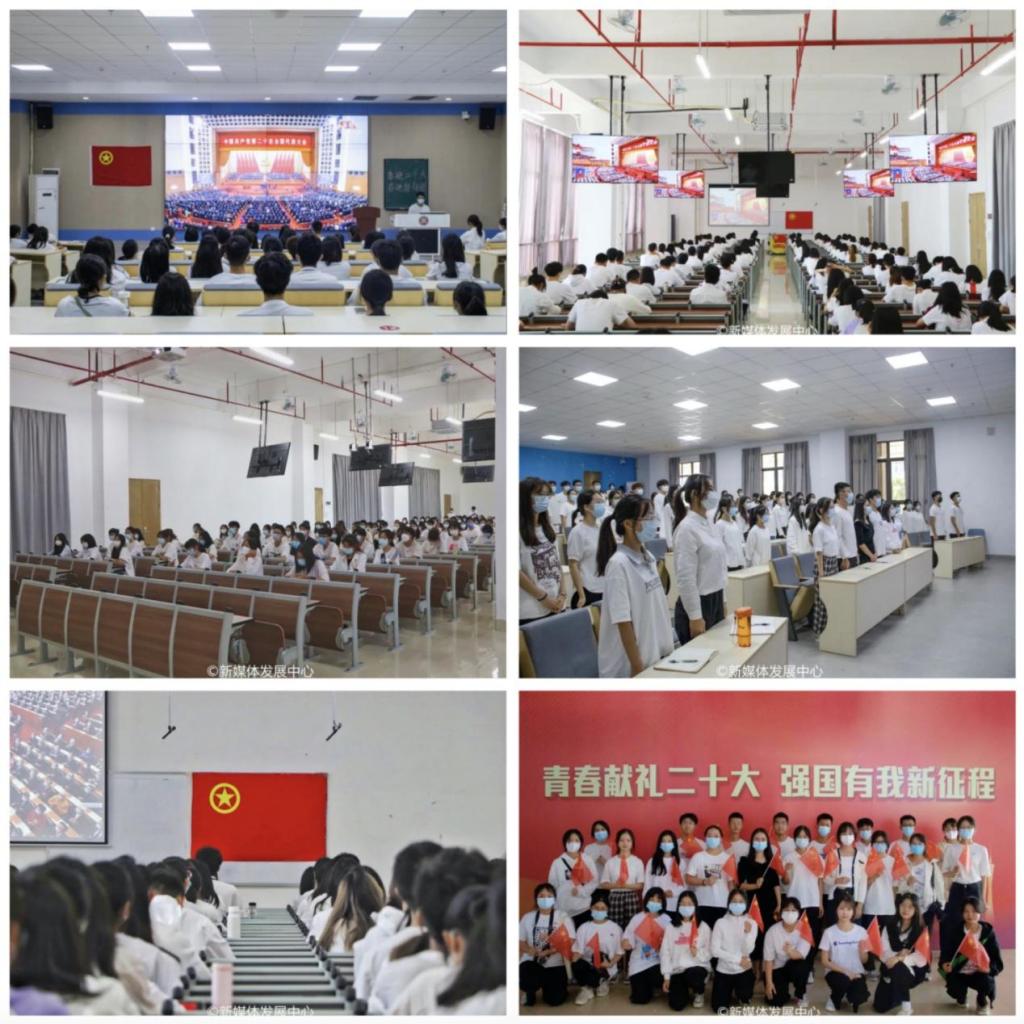 2022年10月16日上午10:00,中国共产党第二十次全国代表大会在北京人民大会堂隆重召开。中国共产党第二十次全国代表大会是在全党全国各族人民迈上全面建设社会主义现代化国家新征程、向第二个百年奋斗目标进军的关键时刻召开的一次十分重要的大会。为深入学习贯彻党的二十大精神,在学校党委统一部署下,校团委组织增城校区、四会校区校级学生组织工作人员、二级学院团组织代表、青马班、团校、全体新生团支书等,近600名青年师生集中收看党的二十大开幕会盛况,认真聆听习近平总书记代表第十九届中央委员会所作的工作报告。青年师生们聚精会神听报告,全神贯注作笔记,真正融入到党的二十大盛会热烈浓厚氛围中。会后,师生们热议党的二十大报告。