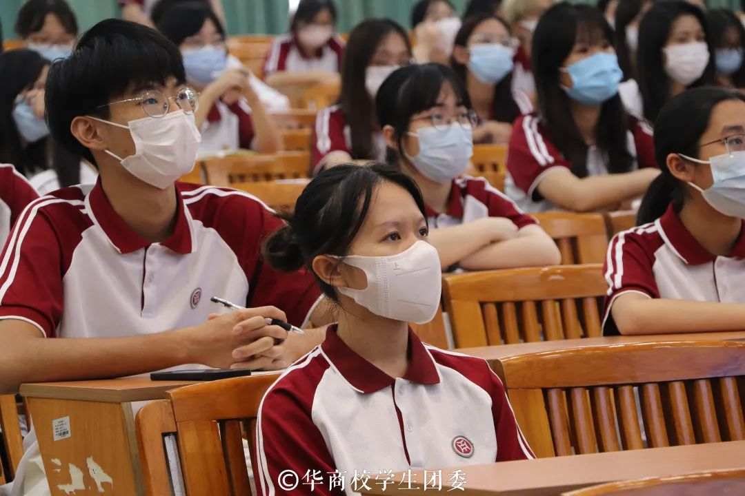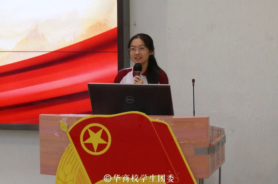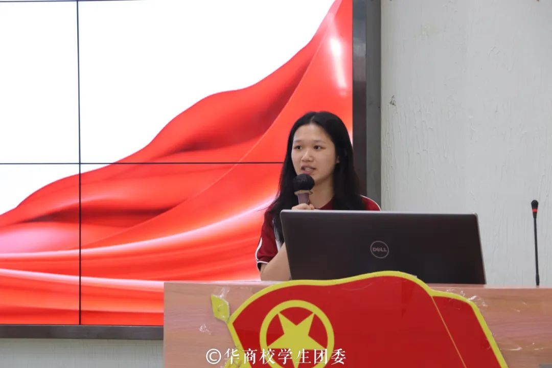国家奖学金获得者、广东省优秀学生骨干黄斯佳同学分别从青年的使命担当、文化自信和坚持投身公益三个方面进行心得分享。她激励华商青年做有理想、敢担当、能吃苦、肯奋斗的好青年。不断增强自身的文化自信,认同国家和民族的文化,坚持投身公益,将个人命运与国家命运相结合,投身于祖国的宏伟事业中。