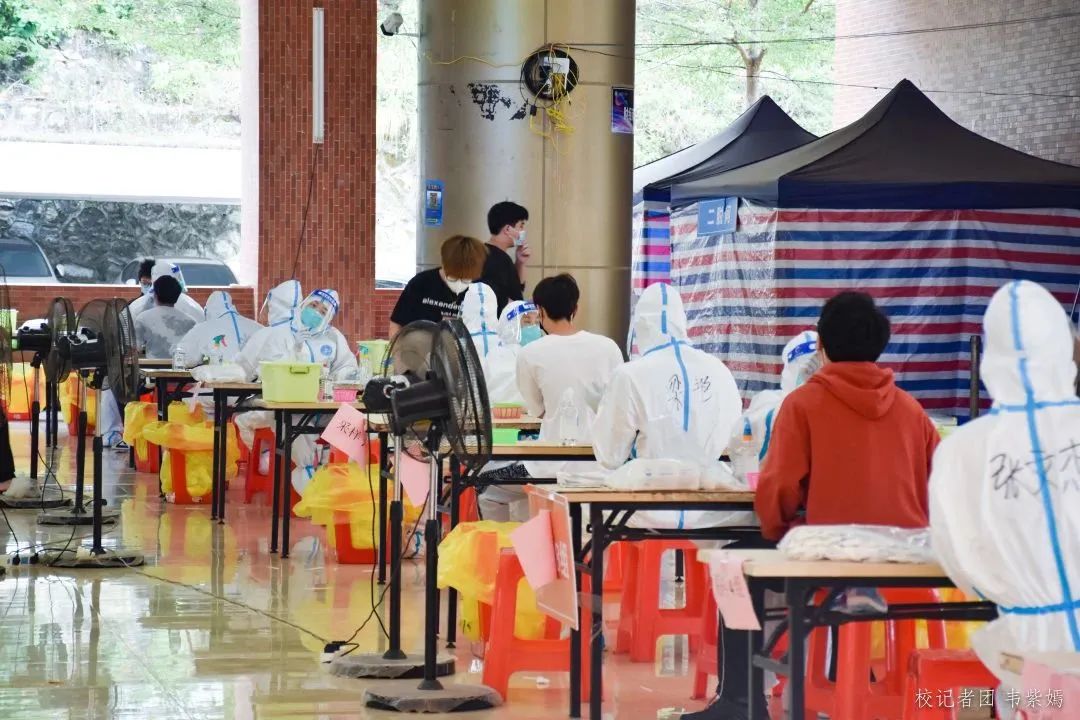19日上午八点,21名经过系统培训并取得核酸检测资格证书的教职工主动请缨,闻令而动,迅速集结,早早到达核酸检测现场与医护人员、学生志愿者们一起各司其职、各负其责、大力协同、积极配合,为核酸检测工作做好充足的准备。在此次核酸检测工作中,各教职工志愿者们热情高涨,认真负责,力争在确保速度的同时也能兼顾到核酸检测的质量。来自行政部门、二级学院等的教职工志愿者们在疫情第一线挺身而出,发挥党员先锋模范带头作用,强有力的保障了我校全员核酸工作的顺利开展,展现了守护校园健康安全、共同抗疫的决心。