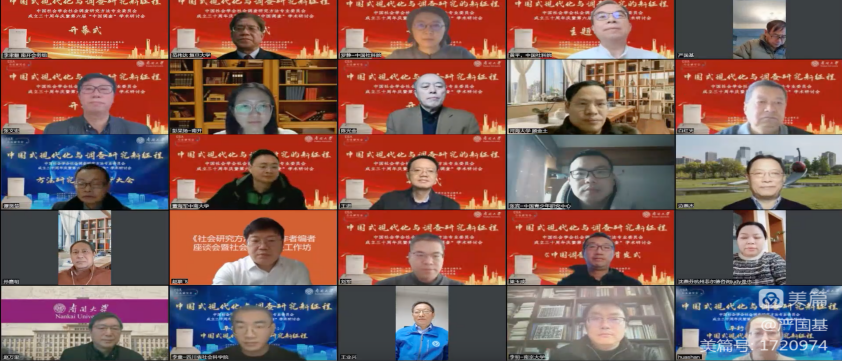 中国社会学会方法研究会首任会长、南开大学社会学系原系主任苏驼教授视频致辞;中国社科院社会学研究所所长、中国社会学会会长陈光金研究员,南开大学周恩来政府管理学院院长、中国社会学会副会长张文宏教授分别致辞。他们充分肯定了方法会过去30年来取得的成就,并对方法研究新征程提出了愿景。