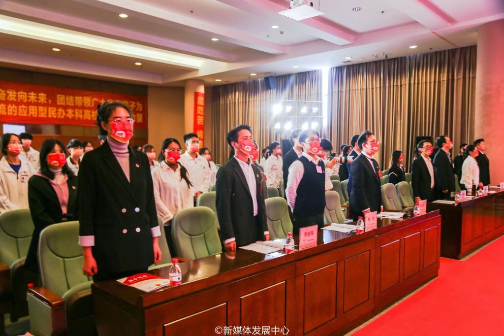 校党委苏宁书记讲话。他代表学校党委向大会的召开表示祝贺,向全体与会代表、学生会组织转达了校党委的关心和期盼。他说,在全党全国深入学习贯彻党的二十大精神的浓厚氛围中,在全校上下凝心聚力加速推进国内知名、广东一流的应用型民办本科高校建设的重要节点上,希望同学们做到以下三点要求:一要坚定理想信念,在学思践悟中筑牢精神高地;二要厚植家国情怀,在砥砺奋进中实现全面发展;三要深化组织改革,在身体力行中破浪前行。苏宁书记对华商青年们寄予厚望,希望他们发挥青年力量,坚定必胜信心,努力拼搏奋斗,以青春之我、奏响强国之音,弘扬新时代的主旋律,用青春唱响时代之声,为学校发展贡献力量,为祖国建设添砖加瓦,为民族复兴铺路架桥。