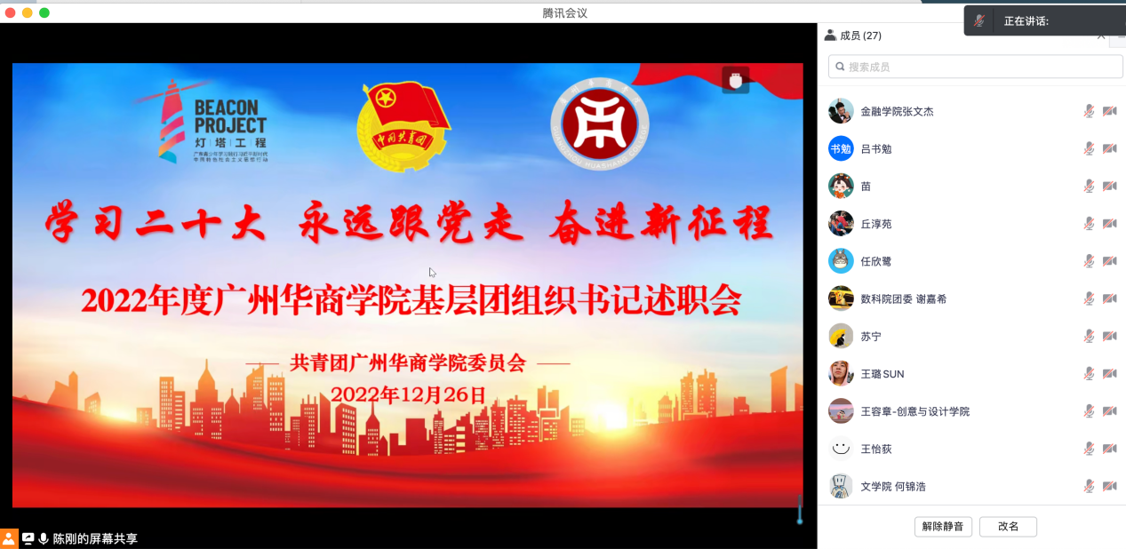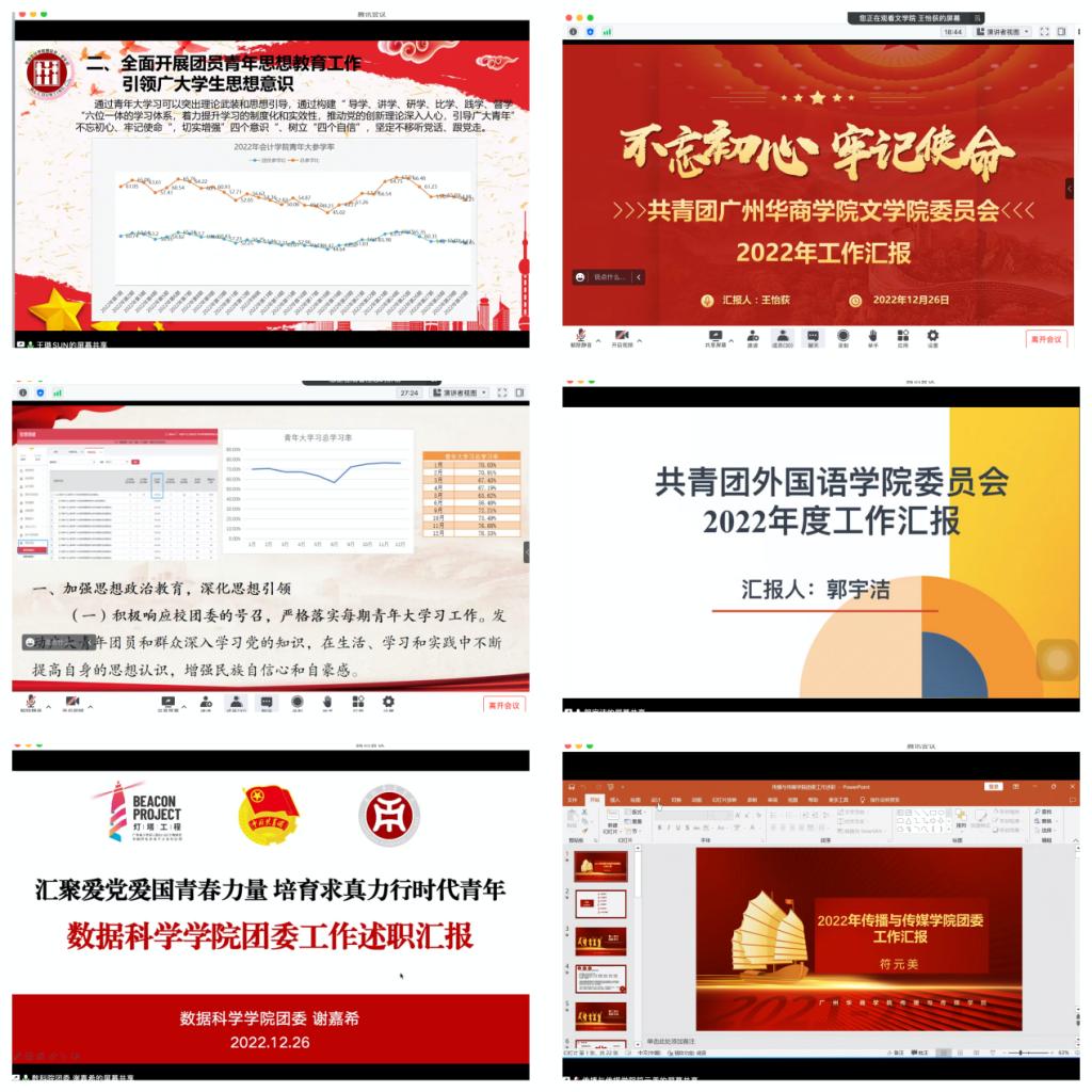 本次会议严格按照团中央、团省委关于基层团组织书记述职评议考核有关工作部署以及学校党委对共青团工作的具体要求。会议对我校2022年共青团工作进行了系统的梳理和总结,为各学院借鉴交流、取长补短、明晰方向、共谋发展搭建了平台,同时也对2023年持续深化共青团改革创新进行部署。在今后的工作中,华商共青团将始终坚守初心使命,牢牢把握“加强思想政治引领”为根本,牢记“服务青年”的工作宗旨,做好学校联系广大青年学生的桥梁和纽带作用,加强共青团的“政治性、先进性、群众性”为工作目标,聚焦主责主业,拓宽工作思路,创新活动载体,全面推动共青团各项工作不断取得新成绩!