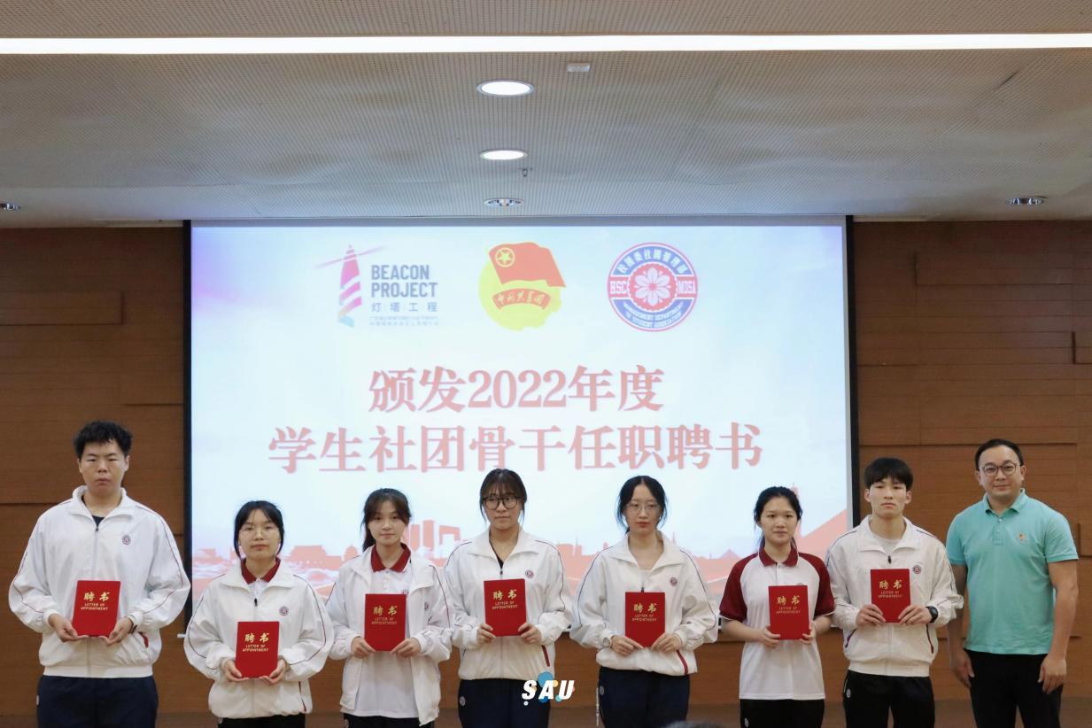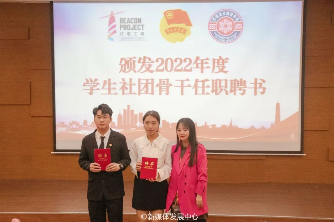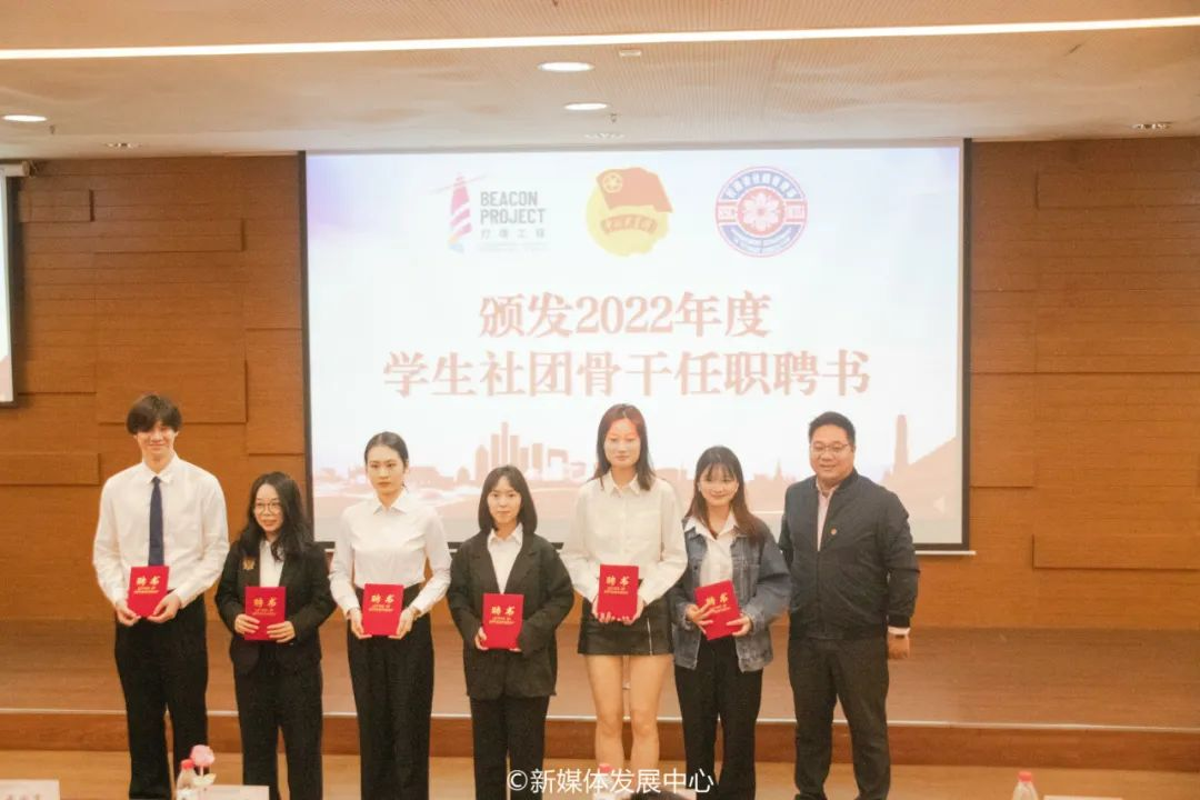 大会在激昂的团歌声中拉开序幕。随后,现场师生观看2022年度304AM永利集团学生社团总结视频。一年来,我校31个不同性质的学生社团在学校党委、行政及各职能部门的关怀与支持下,始终坚持党管学生社团的工作理念,听党话、跟当走,持续深化改革,广泛开展阳光健康、积极向上的社团活动,在国家级、省市级各类比赛、活动中取得多项荣誉成果,充分展现我校学生社团青春风采,涌现一批华商特色的品牌社团,形成“一社一品”的良好局面。