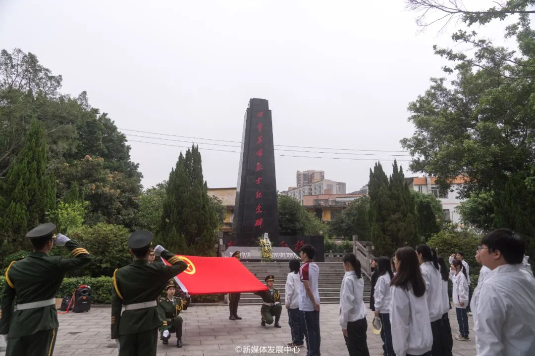 随后,全体师生重温入团誓词。大家在纪念碑前重温入团誓词,师生们表情庄严肃穆,誓词铿锵有力,铮铮誓词在烈士陵园回荡。