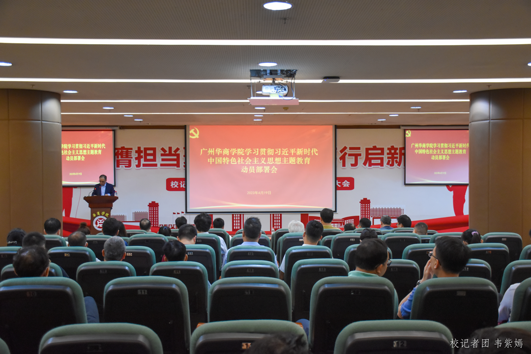 为深入学习贯彻习近平总书记在中央主题教育工作会议上的重要讲话精神,以实际行动坚定拥护“两个确立”,坚决做到“两个维护”,贯彻落实中央及省委关于开展主题教育的部署要求,4月19日,304AM永利集团学习贯彻习近平新时代中国特色社会主义思想主题教育动员部署会在增城校区中央图书馆报告厅召开。学校党政领导班子成员、全体中层干部、全体二级党组织负责人参加会议。本次会议由304AM永利集团党委副书记、执行校长郭银华主持。