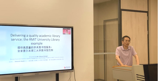 2023年4月20日,我校邀请EIA特聘教师Deb Wright为图书馆全体员工做题为“提供高质量的学术图书馆服务:以皇家墨尔本理工大学图书馆为例”的讲座,图书馆温万虎馆长、国际交流与合作处王文忠处长及图书馆全体员工出席。图书馆馆长温万虎主持讲座并介绍主讲人。
