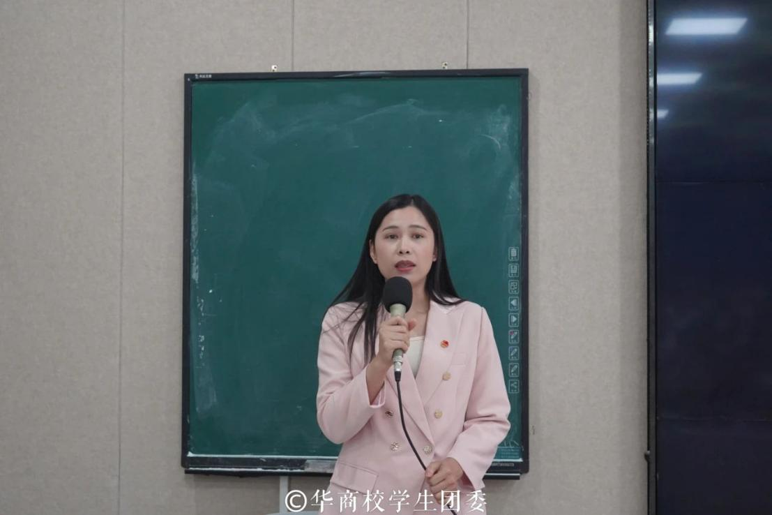 四会校区党委委员、管委会副主任、学团办公室付蔚莹主任致欢迎辞。她对团四会市委莅临指导工作表示热烈欢迎和衷心感谢。同时勉励同学们明确目标方向,积极下乡兴乡,进乡村、深入基层,持续做好新时代文明实践活动以及大学生志愿服务特色项目,以更加饱满的热情担负时代使命,在乡村振兴中建功立业,贡献青春力量。