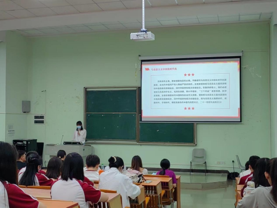 由管理学院学生第一党支部书记袁方方同志带领全体党员学习马克思主义中国化、时代化。习近平总书记在党的二十大报告中指出:党的十八大以来,国内外形势新变化和实践新要求,迫切需要我们从理论和实践的结合上深入回答关系党和国家事业发展、党治国理政的一系列重大时代课题。通过实践,我们明白中国共产党为什么能,中国特色社会主义为什么好,归根到底是马克思主义行,是中国化、时代化的马克思主义行。在新的征程上,我们必须坚持马克思列宁主义、毛泽东思想、邓小平理论、“三个代表”重要思想、科学发展观,全面贯彻新时代中国特色社会主义思想,坚持把马克思主义基本原理同中国具体实际相结合、同中华优秀传统文化相结合,用马克思主义观察时代、把握时代、引领时代,继续发展当代中国马克思主义、二十一世纪马克思主义!