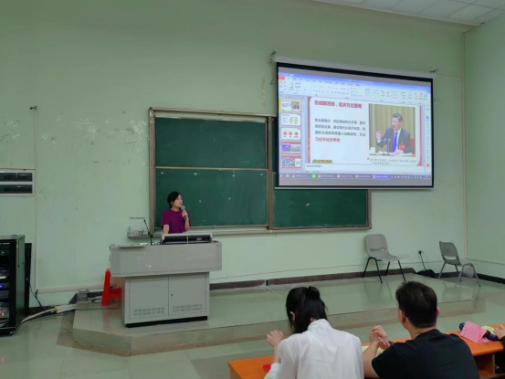 接着,管理学院学生第四党支部书记郭思琪同志授课的主题是伟大时代的历史跨越。进入新时代,在这十年来,我们国家经济发展呈现平衡性、协调性、可持续性明显增强,经济实力的上升,会给我国其它领域的改革提供重要的物质条件,在经济领域形成了新的思想;十年来,以习近平同志为核心的党中央不断深化对民主政治发展规律的认识,提出全过程人民民主重大理念;我国文化自信明显增强,大力弘扬中华传统文化;人民生活持续改善,我国社会建设全面加强,人民生活全方位改善,社会治理社会化、法治化、智能化、专业化水平大幅度提升,呈现出人民安居乐业、社会安定有序的良好局面,续写了社会长期稳定奇迹。