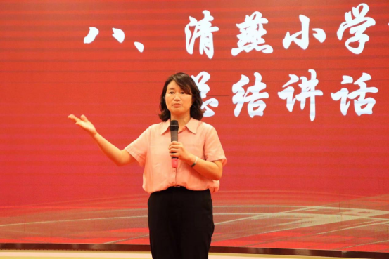 最后,清燕小学刘春兰校长作总结讲话。刘校长从感恩、感动和期许三个方面进行总结,她指出感恩两校合作让学生的学习生活变得生动有趣;因学生志愿者风雨无阻,在课余时间为清燕学子进行六一汇演指导而感动;期许华商学子在今后能自信的走上三尺讲台,成为一名优秀的人民教师。