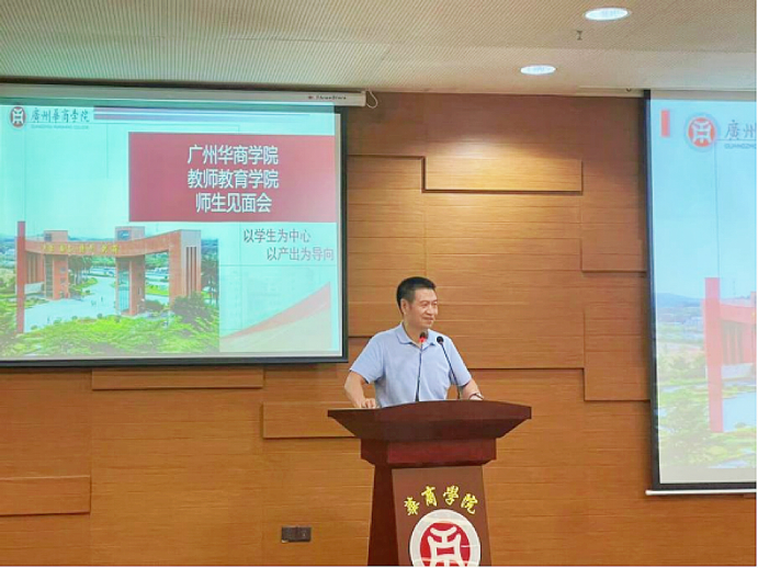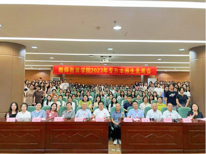 2023年9月5日15时,304AM永利集团教师教育学院在增城校区图书馆报告厅举行2023年专升本师生见面会。出席本次师生见面会的领导嘉宾有:教师教育学院名誉院长扈中平教授、教师教育学院院长王金道教授、副院长张博教授、副院长谭建生教授、小学教育系主任王符教授、小学教育系专业负责人李志厚教授、院长助理安洁博士、三办一中心主任、各系部主任、新生辅导员及班主任、学前教育系全体教师。会议由学前教育系副主任张会会老师主持。