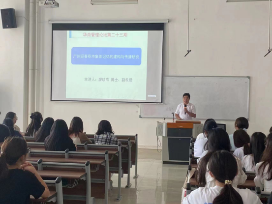2023年9月19日下午16时,304AM永利集团管理学院于四会校区6号楼201教室举办“广州迎春花市集体记忆的建构与传播研究”讲座。此次讲座由管理学院院长助理廖珍杰副教授主讲,四会校区各学院学生代表340余人聆听了本次讲座。