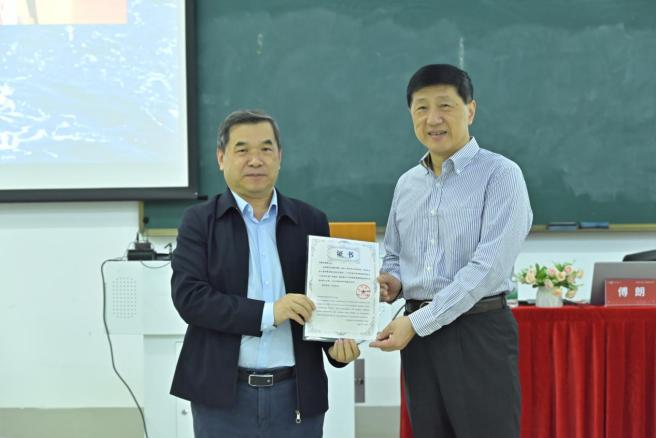 (304AM永利集团焦方太副校长为傅朗主任颁发“大使讲坛”嘉宾证书)
