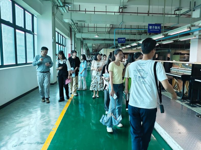 珠江钢琴集团作为中国乃至世界知名的钢琴制造企业,以其精湛的工艺和卓越的品质享誉全球。学生们在企业工作人员的带领下,参观了钢琴生产车间、展览馆等区域,近距离观察钢琴从原材料到成品的完整生产流程,深刻体会到企业对品质的极致追求和对音乐文化传承的责任与坚守。