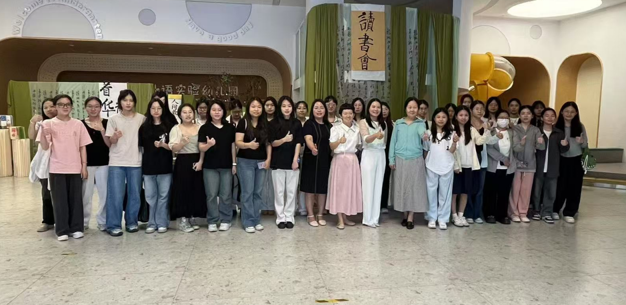 2025年4月30日上午,教师教育学院学前教育专业2022级学前教育(专升本)1、2班共计61名学生,在学前教育系主任张建波教授和副主任张会会老师的带领下,赴华商外语实验幼儿园开展沉浸式实践教学活动,实现从理论课堂到教育一线的跨越。
