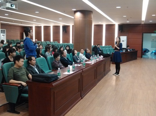 为进一步改进外语老师们的教学方法,提高老师的教学质量,增进与同学间的互动交流,更好的完成教学任务。4月26日下午,在我院图书馆报告厅举行了大学英语视听说及综合教程示范课。外语系领导及60位专职教师、50多位学生出席。此外, 广州大学松田学院大学英语部、东莞城市学院外语系、上海交通大学出版社代表等20余名老师出席我系的示范课。