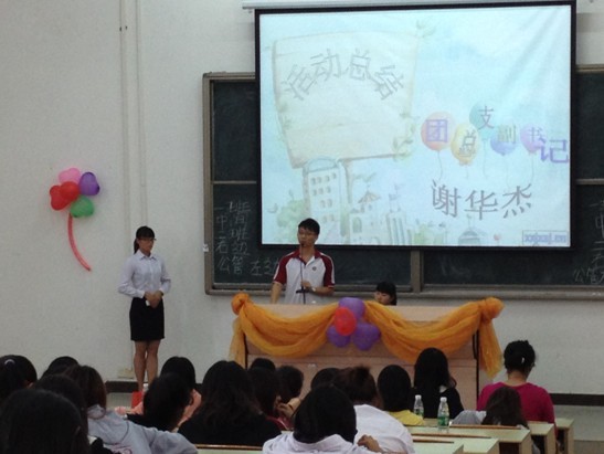 活动在庄严的团歌声中拉开帷幕。活动开始,党支部副书记龙灿璨、团总支组织部部长赖桂屺分别为此次团课发表了精彩演讲;紧接着组织部为大家播放了胡锦涛总书记在纪念建团90周年大会上发表重要讲话的视频,该视频引起了现场同学的激烈讨论,也有部分同学陷入了深思,有奖问答环节将本次活动推向了高潮。最后,大家一起回顾了我系上一学年的团日活动,团总支副书记谢华杰对此次活动做了总结,12级各班团支书也对新学年的工作计划做出了展望。